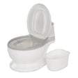 - Hinged lid mimics a grown-up toilet for a more realistic training experience.