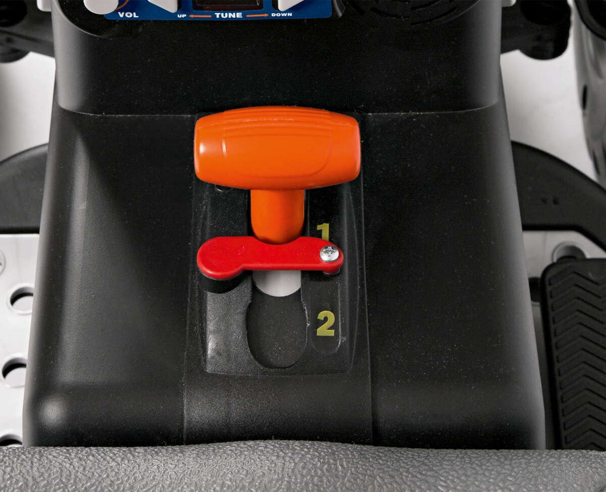 - Two Speeds: Drive at 2.5 mph for beginners or up to 4.5 mph for more experienced drivers. Reverse gear included.