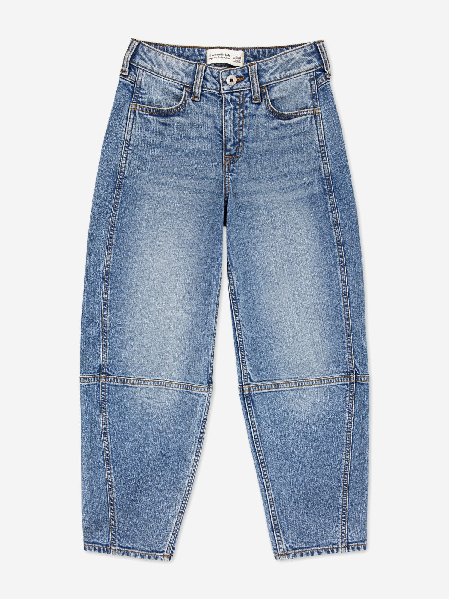 Abercrombie & Fitch portray confident, self-assured looks in their timeless American designs. These girls cabin blues high rise balloon jeans are perfect for fashion-conscious youngsters.