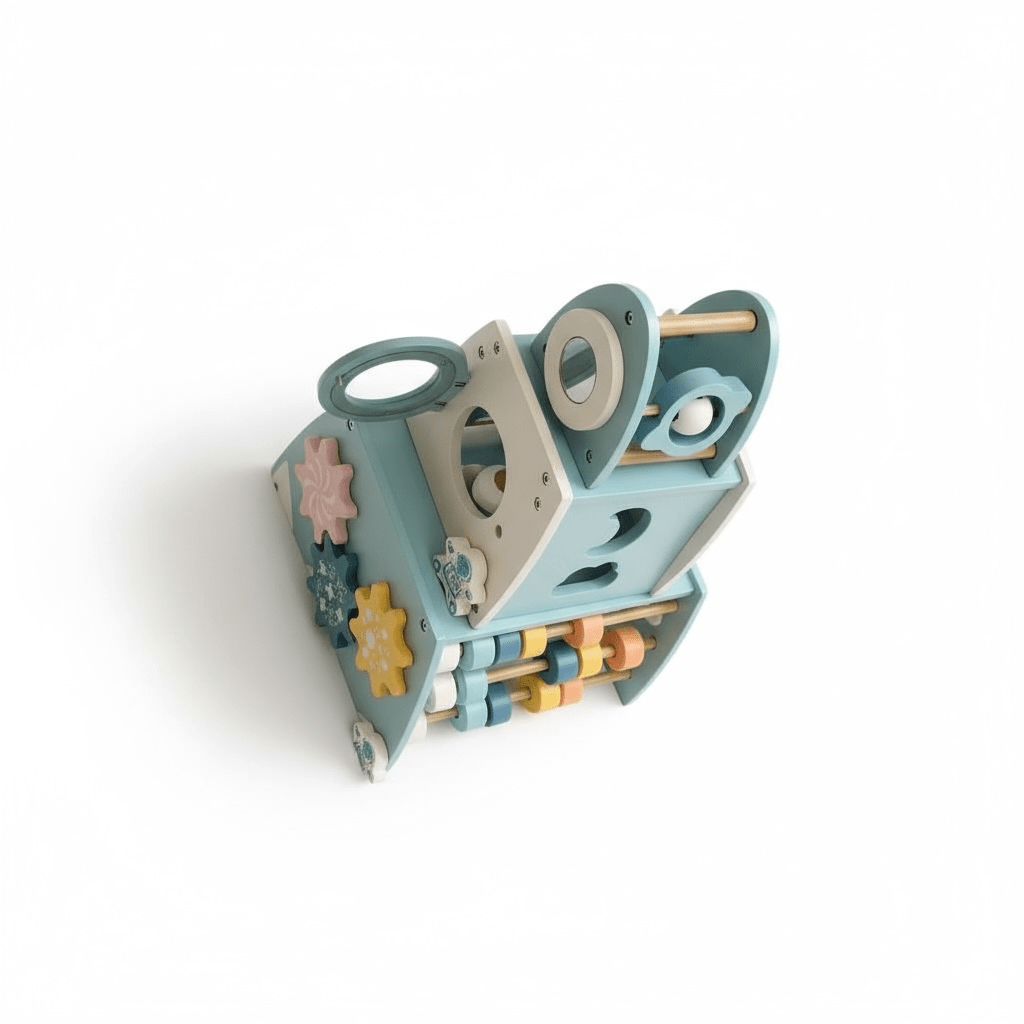 Includes spinning gears, bead sliders and shape-sorting cut-outs