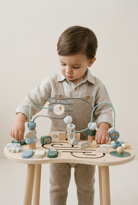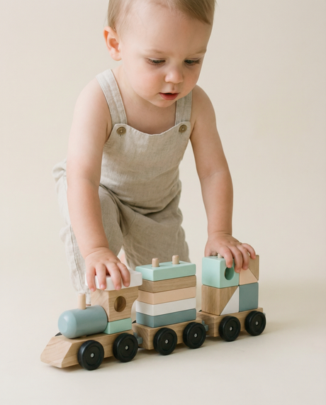Wooden Tractor & Trailer Play Set – Neutral Farm Toy with Detachable Rattle Drum