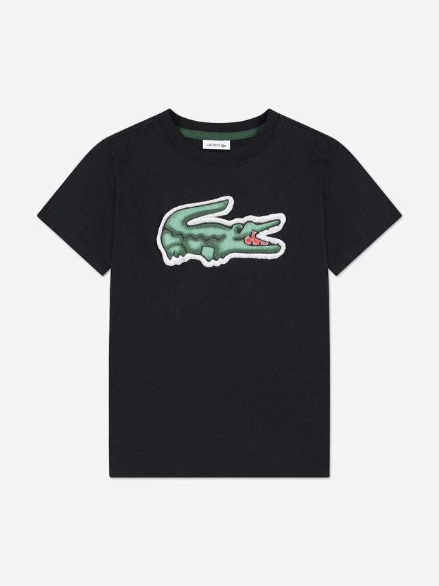 Give his everyday look a clean, sporty edge with this boys black Lacoste t-shirt.
