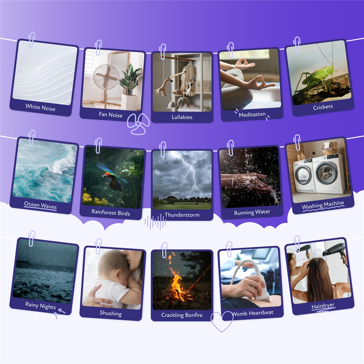 - 26 Calming Sounds: Choose from a variety of white noise, fan, and natural sounds to help soothe you and your baby.