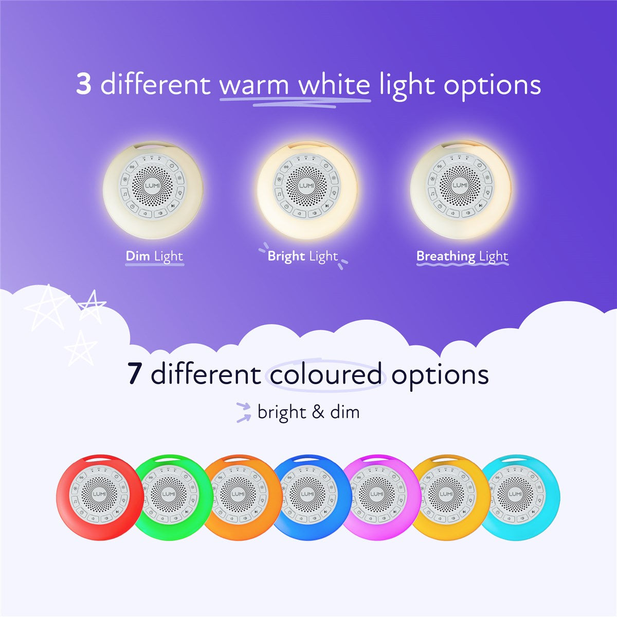 - Customisable Night Light: Choose from 7 colour lights and 3 warm light settings to create the ideal sleep environment.